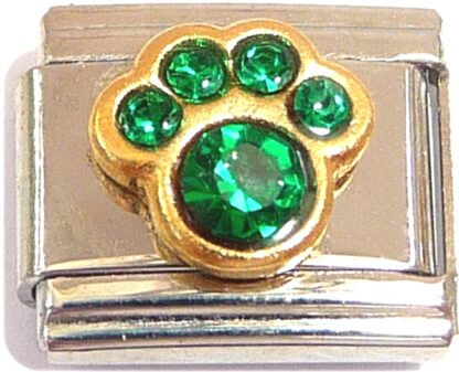 9mm stainless steel Emerald (May) Paw Print Birthstone Italian Charm
